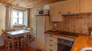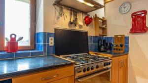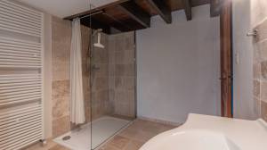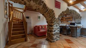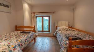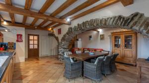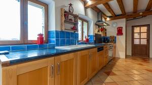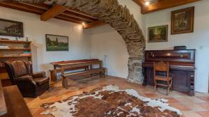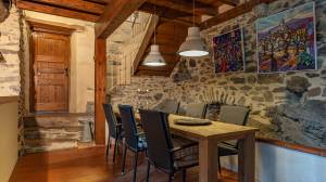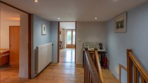 This fully independent house is currently rented out as a holiday home and has a kitchen, living room, entrance hall, utility room and, on the first floor, four bedrooms and three bathrooms. There is also a large attic for storage. The house has a heat pump from 2023. The living room has an authentic fireplace with a bread oven.