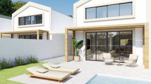 Each villa spans around 120m² and sits on its own plot, featuring a south-facing garden, private pool, and covered parking. Designed with attention to detail, the homes include premium finishes, solar panels, air conditioning throughout, and layouts that maximize natural light while creating a seamless indoor-outdoor experience.