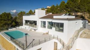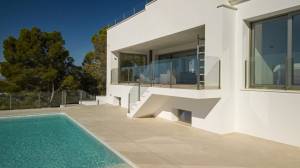 The first designs were quickly ready, and various adjustments were made during the construction process to optimally utilize the villa and the location. The result is an open and bright house, where one can enjoy the breathtaking view from every room. The bedrooms are equipped with spacious French balconies, seamlessly blending indoor and outdoor living. Every living and sleeping area has a view of the Mediterranean Sea.