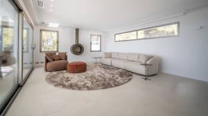 The floors in the house are fitted with 80x80cm ceramic PORCELANOSA UNIK tiles in the color IVORY. The same tiles are used on the terrace, but in the anti-slip variant.