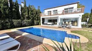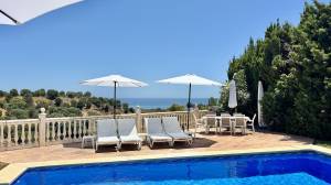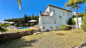 New Listing – Lovely 5 bed, 3.5 bath Villa on elevated plot in Upper Calahonda, offering beautiful panoramic views over tree-lined hillside down to the sea.