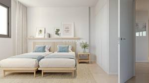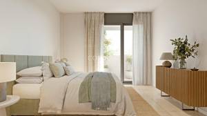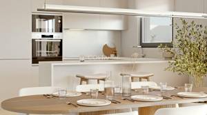 This development features two- and three-bedroom apartments in low-rise buildings of up to five floors, all thoughtfully oriented to maximize natural light and park views. Each unit is designed to seamlessly connect indoor and outdoor spaces with spacious terraces and glass balustrades. The interiors emphasize modern living, with open-plan layouts and fully-fitted kitchens featuring quartz countertops and Bosch appliances. The complex integrates eco-friendly solutions, including photovoltaic panels, aerothermal systems, and efficient water fixtures for sustainability without sacrificing comfort.