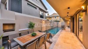 Fully Furnished Villas with High Rental Income in Fethiye TurkeyFethiye is located to the east of Mugla and is known for its remnants from the Hellenistic and Roman civilizations that have survived to the present day, its natural wonder bays, and its world-famous beaches. It also stands out for its mild Mediterranean climate, which enjoys sunny weather for a large part of the year, and its proximity to the historical Lycian Way and Babadag, one of the most suitable spots for paragliding. Fethiye is also home to many historical and natural beauties, such as the St. Nicholas Church, also known as Santa Claus, the Cleopatra Hamam built by Cleopatra during her journey to Rome, the Amitas Rock Tombs, and the ruins of the ancient city of Telmessos. With all these features, Fethiye offers an ideal location for both holiday and living purposes.The villas for sale in Fethiye Turkey are part of a project consisting of 18 twin villas within a plot share of 4135 square meters. The project is located 500 meters away from daily social and amenity points such as the promenade, cafes, bars, restaurants, and fitness facilities. It is also 900 meters away from Calis Beach, a popular location year-round. The villas are situated at a distance of 2.1 kilometers from Fethiye State Hospital, 6 kilometers from the Telmessos Ancient Theater, 7 kilometers from the Amitas Rock Tombs, 11 kilometers from Oludeniz Beach, 13 kilometers from the Butterfly Valley, 16 kilometers from Faralya, 21 kilometers from Kabak Bay, 26 kilometers from Gocek, 39 kilometers from Saklikent National Park, and 43 kilometers from Dalaman Airport.Each villa is located within an independent garden and designed with eco-friendly architecture. The outdoor area includes a 30 square meter swimming pool surrounded by pine trees, a meticulously landscaped garden, a sun terrace, a seating group, 4 sun loungers, a parasol, a barbecue, a swing, and a shower. The villas offer easy access to the city center, the sea, entertainment venues, and sports areas in Fethiye. They feature 3 en-suite rooms, a hammam, a sauna, and 2 double jacuzzis. The villas consist of a ground floor, first floor, and attic floor.Ground Floor: Sun terrace, private pool, private garden, seating group, 4 sun loungers, parasol, barbecue, swing, and shower. Kitchen: Refrigerator, dishwasher, dining table for 4 people, oven, 4-burner built-in stove. Living Room: Seating group, TV, fireplace, air conditioning, access to the pool terrace.First Floor: Suite master bedroom and suite junior bedroom. Suite Junior Bedroom: 2 single beds, TV, nightstand, air conditioning, wardrobe, and bathroom. Suite Master Bedroom: Double bed, dressing table, nightstand, jacuzzi, air conditioning, wardrobe, bathroom, and balcony.Attic Floor: Suite master bedroom: Double bed, dressing table, nightstand, jacuzzi, air conditioning, wardrobe, bathroom, and balcony.These fully furnished villas will be delivered with high-tech air conditioning and an underfloor heating system in each room. Thanks to these features, they offer a high rental income potential for both long-term and short-term rentals. BJV-00131