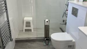 Composée d’une cuisine-séjour (7,40 x 5,40 m), elle dispose à l’étage de deux chambres, d’un palier, et d’une salle de bain avec douche, toilettes, double vasque et espace pour lave-linge. Surface habitable : environ 40 m².