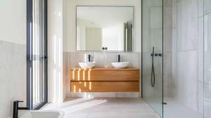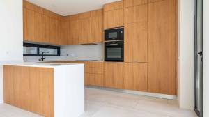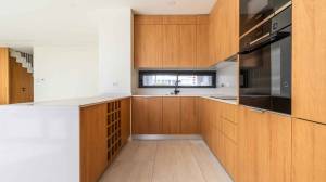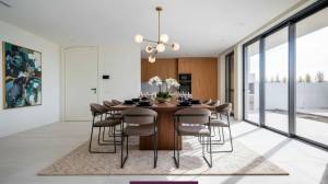 La villa est conçue dans un style contemporain combiné à la chaleur des éléments en bois. Le confort quotidien a également été pris en compte : de la porte supplémentaire du parking à la cuisine, à la porte du jardin avant au jardin arrière pour que le personnel chargé de l’entretien de la piscine et du jardin puisse facilement accéder à la maison, en passant par la porte d’entrée et la porte des toilettes bien cachées grâce à l’utilisation de magnifiques éléments muraux en bois, la villa a été méticuleusement conçue jusqu’au dernier détail.