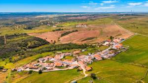 Dit landgoed ligt in de prachtige regio Alentejo en is een ware ontsnapping aan de drukte van het moderne leven, tussen Luzianes-Gare en Santa Clara a Velha. Het is bereikbaar via een onverharde weg van 2 km (ongeveer 6 minuten met de auto) en biedt volledige privacy terwijl het toch dicht genoeg bij de nabijgelegen dorpen is voor essentiële voorzieningen. De omgeving staat bekend om zijn glooiende heuvels, kurkbossen en traditionele Portugese charme – een perfecte omgeving voor een vredig en duurzaam leven.