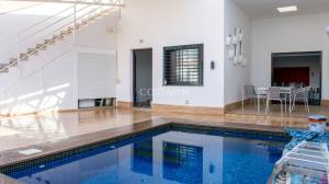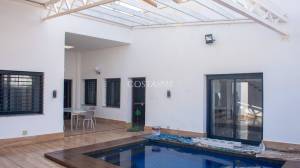 De woning beschikt over vier slaapkamers met inbouwkasten, waaronder een master suite, evenals een volledig uitgeruste keuken en een woon-/eetkamer met dubbele open haard, die ook verbonden is met de keuken. Voorzieningen zijn onder meer marmeren vloeren, elektrische rolluiken en gepantserde deuren voor comfort en bescherming. Er is ook een intercom en een apart kantoor, ideaal voor telewerken. Het privé-zoutwaterzwembad zorgt voor een vleugje exclusiviteit en welzijn.