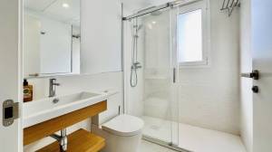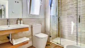 Back on the first floor, the laundry room is separated from the kitchen by a door, where there is space for storage (like a pantry), and we find a washing machine. All appliances are top-tier brands (Siemens). The penthouse has a Vaillant aerothermal central cooling/heating, boiler, and underfloor heating system (extremely efficient). Each room in the house has its own independent thermostat. The master bedroom and ensuite bathroom floors have underfloor heating (water-based).