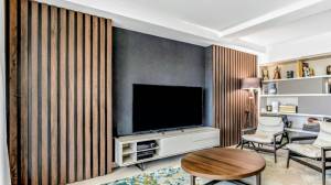 The complex, Elements, is modern, with clean lines and a nice swimming pool area, where one can spend a relaxing morning or afternoon in the sun or under a tropical-style parasol. The gardens boast mature vegetation, like olive trees, that offer a nice natural shade during the summer heat. Residents also have access to a clubhouse with a gym with weights and other equipment, as well as a lounging area for parties, gatherings, a large TV to watch sports or movies, a fully equipped kitchen, a bathroom, and a nice terrace with a dining table.